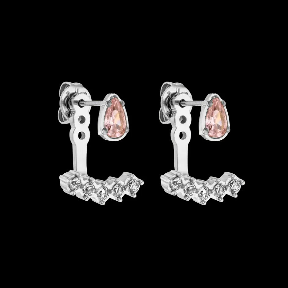 Die Adore Front Back Ohrringe Bieten Verschiedene Tragevarianten Und Sind Mit Schmucksteinen In Rosa Und Weis Verziert.