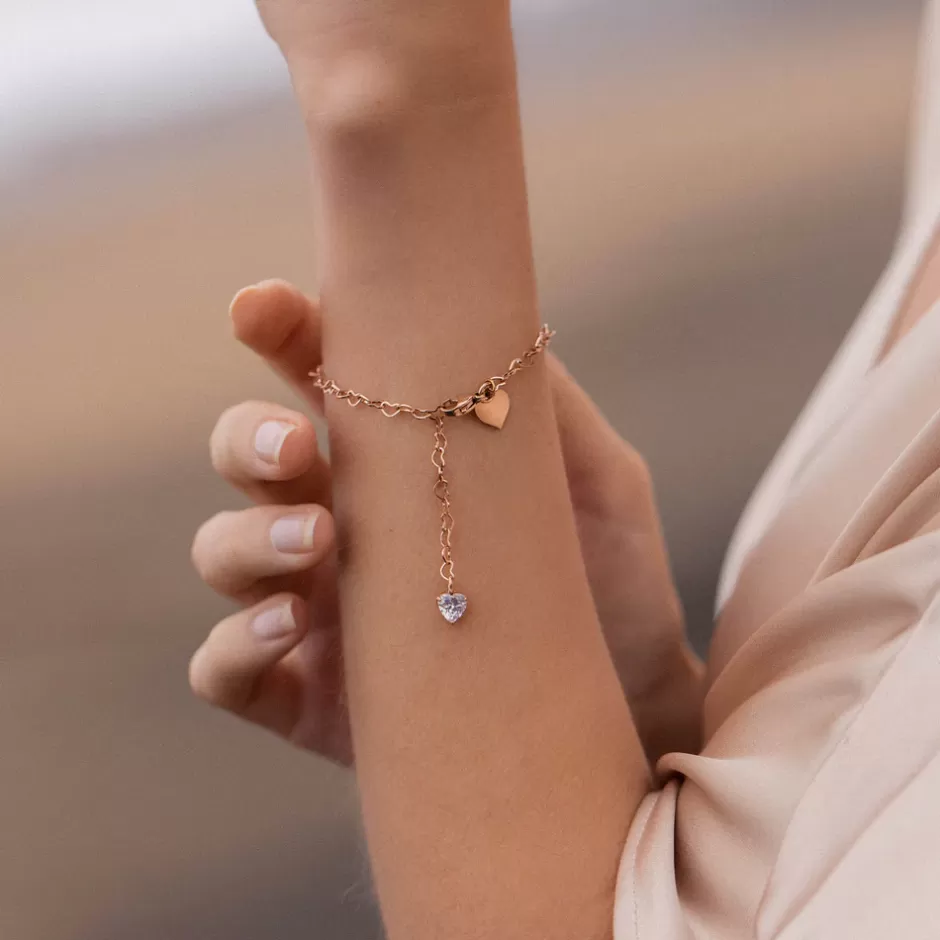 Das Endless Love Armband Besteht Aus Herzformigen Kettengliedern Mit Einem Schmuckstein-Herz Als Anhanger.