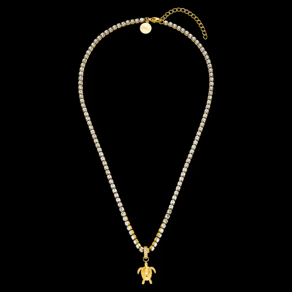 Die Honu White Kette Aus Schmucksteinen Tragt Einen Anhanger In Form Einer Schildkrote. MaterialGold: Edelstahl 18K Verg…