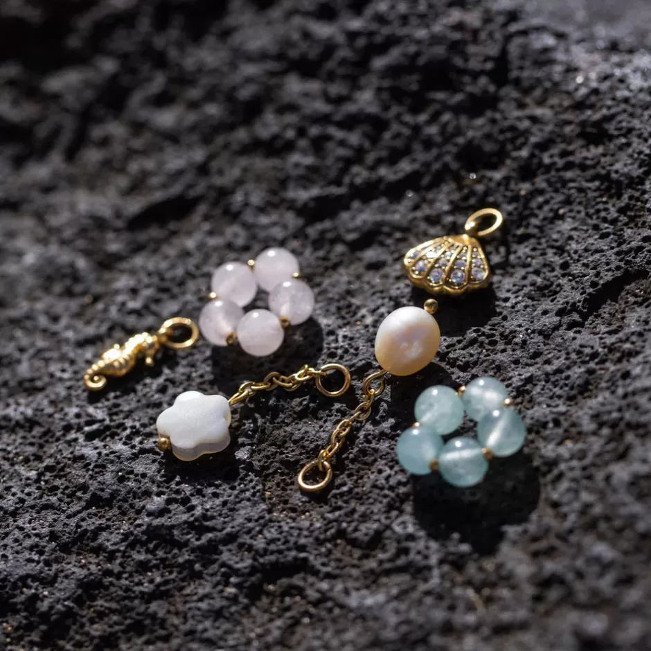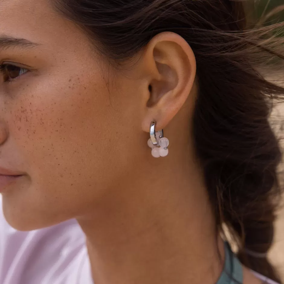 Rosenquartzperlen Formen Einen Blumen Charm. Der Rose Flower Charm Passt Perfekt An Die Creolen Der Modular Hoops Collection.