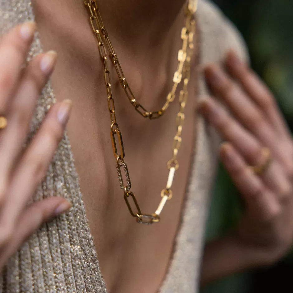 Elegante Gliederkette, In Regelmasigen Abstanden Mit Schmucksteinen Besetzt. MaterialGold: Edelstahl 18K VergoldetSilber…