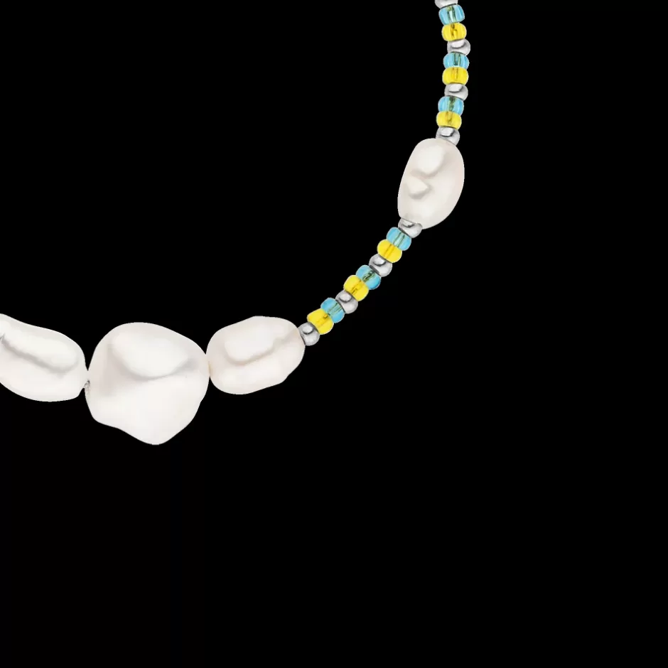 Sommerliches Armband Mit Perlenmix. MaterialGold: Edelstahl 18K VergoldetSilber: EdelstahlPerlen: Glas, KeshiFarbe: Blau…