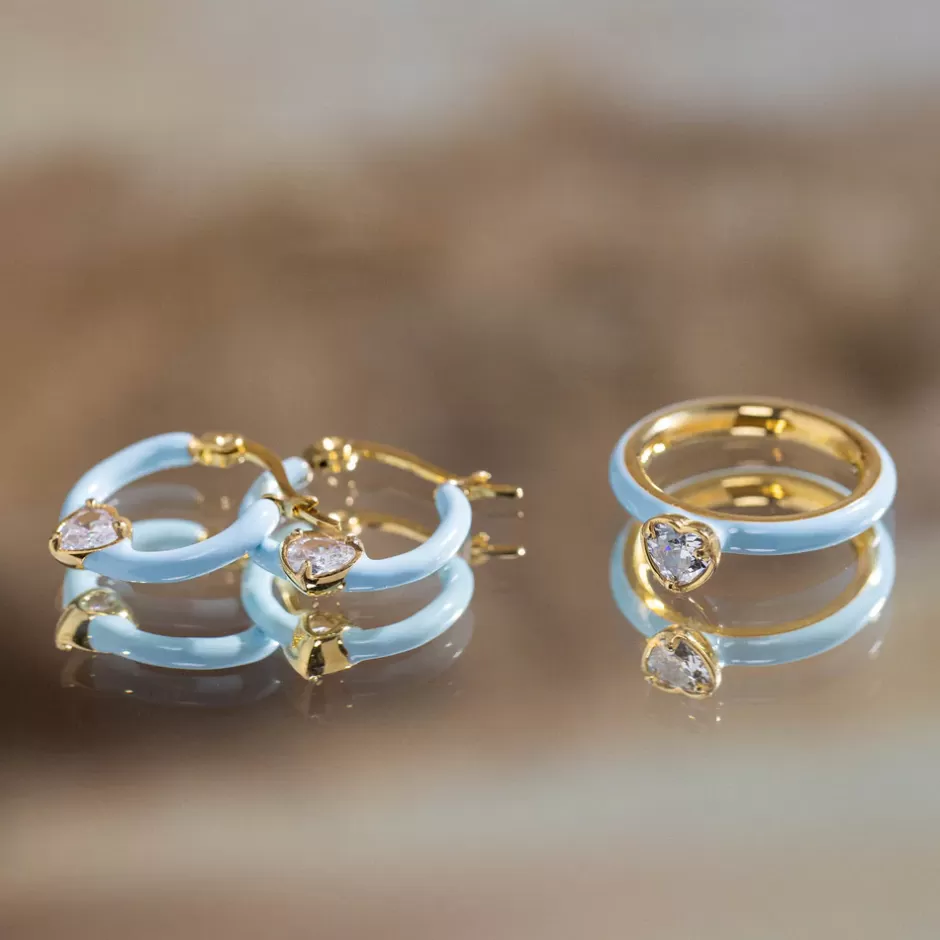 Die Hellblauen Cherie Creolen Werden Durch Ein Schmuckstein-Herz Verziert. MaterialGold: Edelstahl 18K VergoldetSilber: …