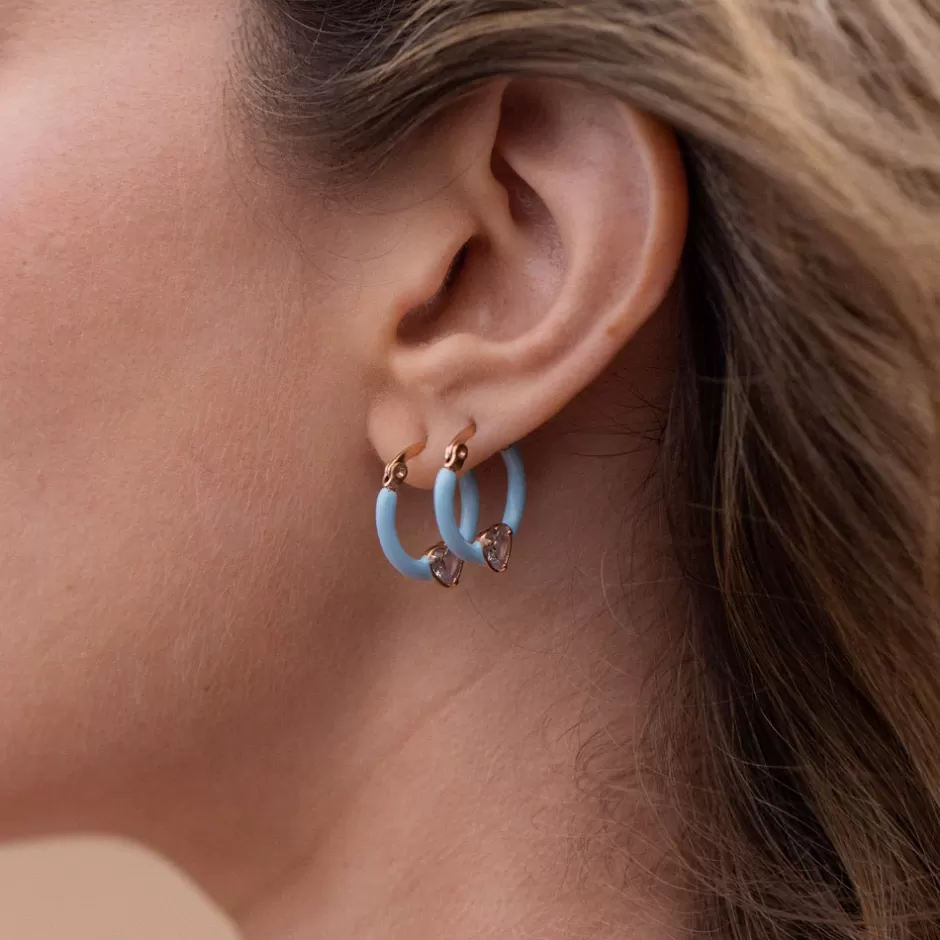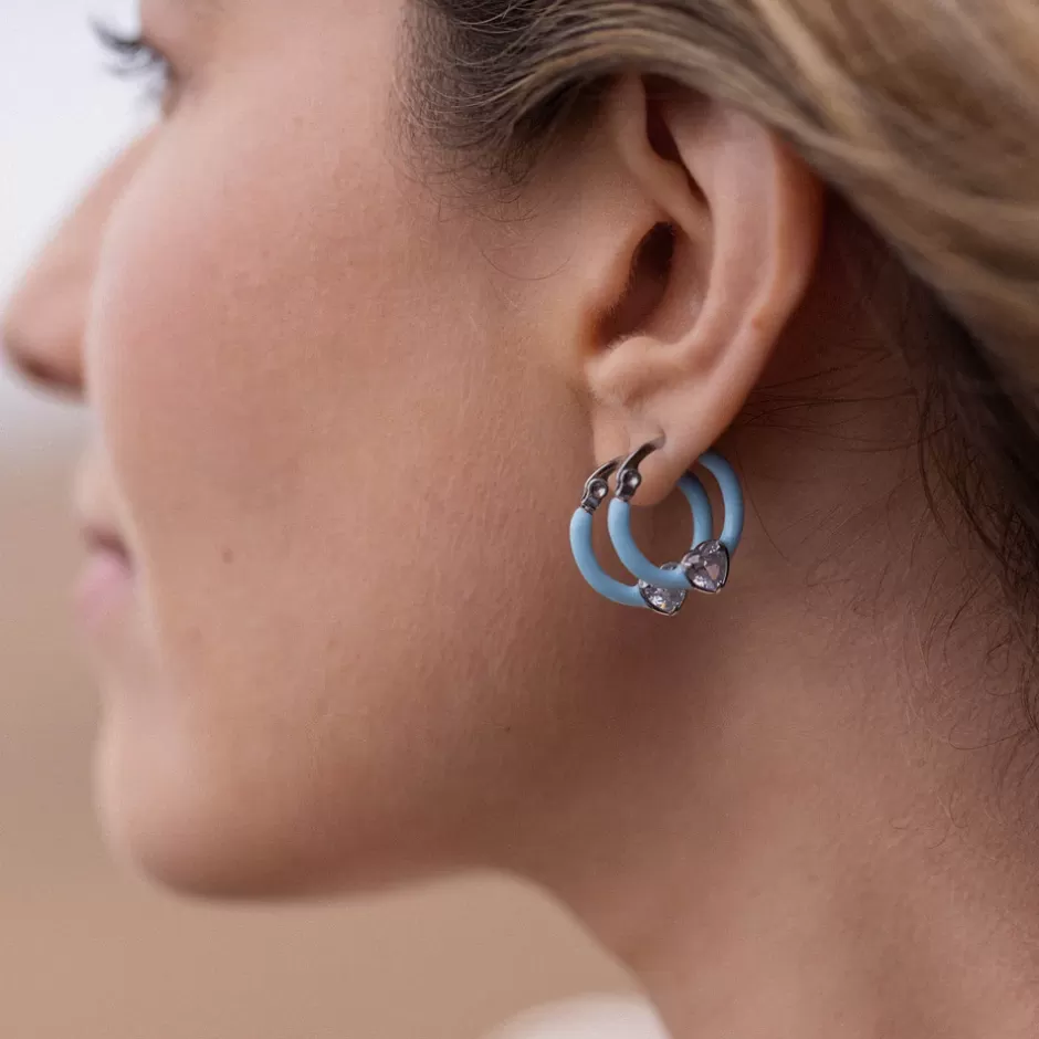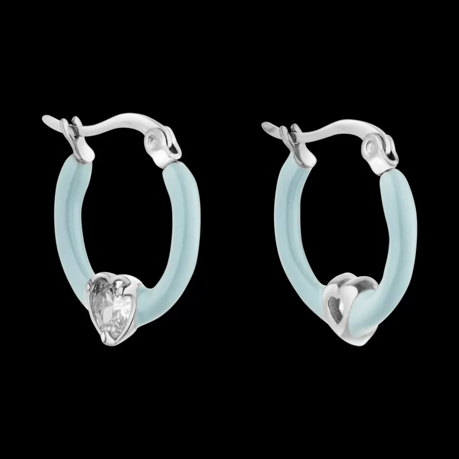 Die Hellblauen Cherie Creolen Werden Durch Ein Schmuckstein-Herz Verziert.