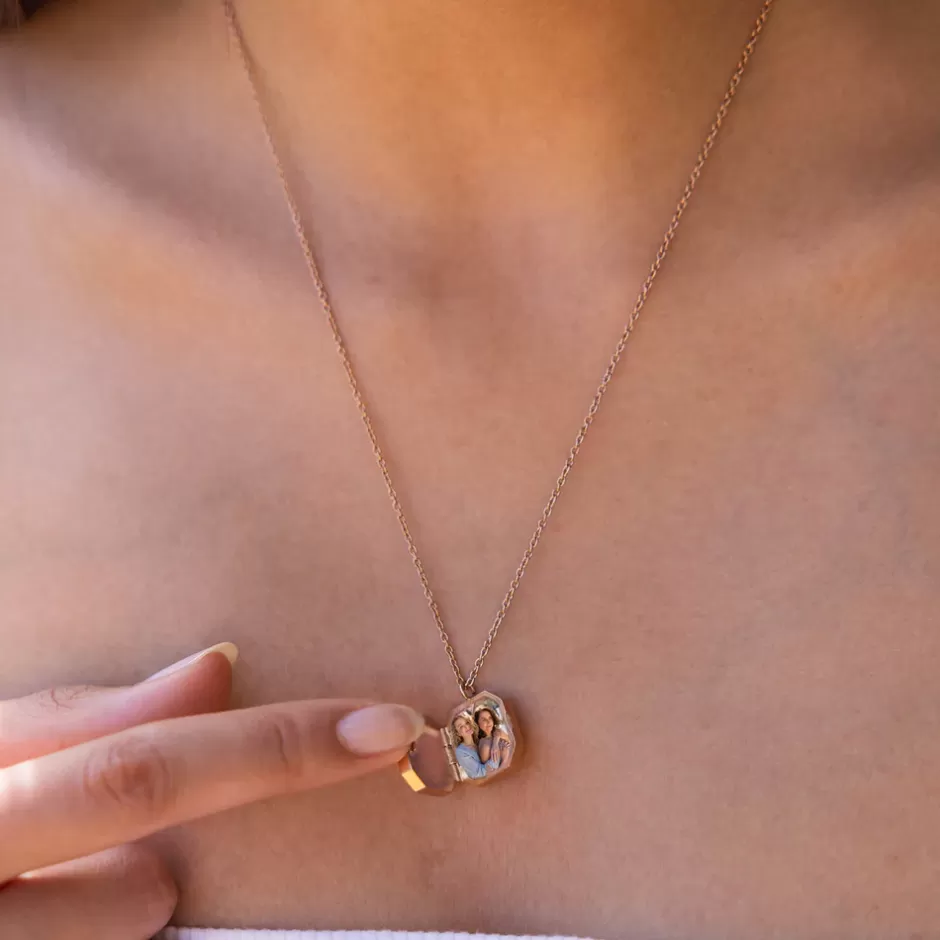 Achteckiges Medaillon Mit Gravierbarer Vorderseite. Gestalte Deine Elegance Medaillon Kette Noch Personlicher, Indem Du Ein Foto Einfugst.
