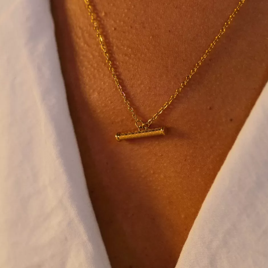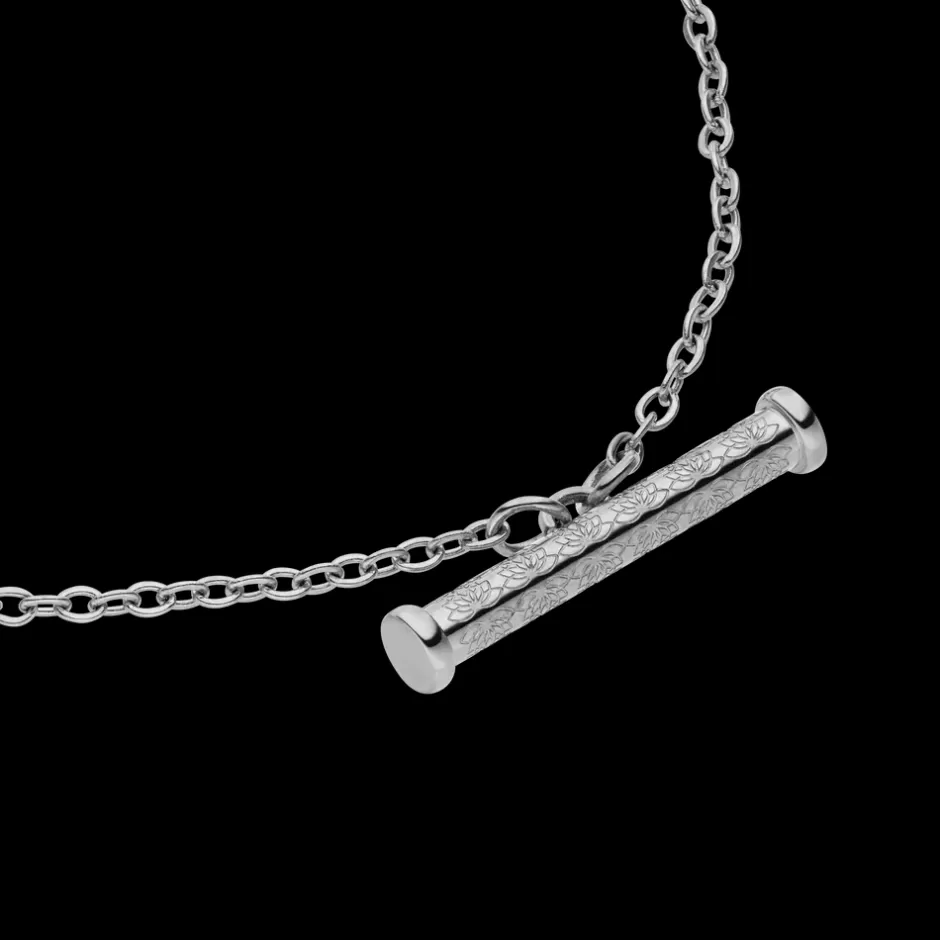 Filigrane Halskette Mit Knebelverschluss. An Den Glanzenden Knebel Lasst Sich Ein Beliebiger Anhanger Der Personalized Collection Hangen. Den Verschluss Zieren Kleine, Eingravierte Lotusbluten.