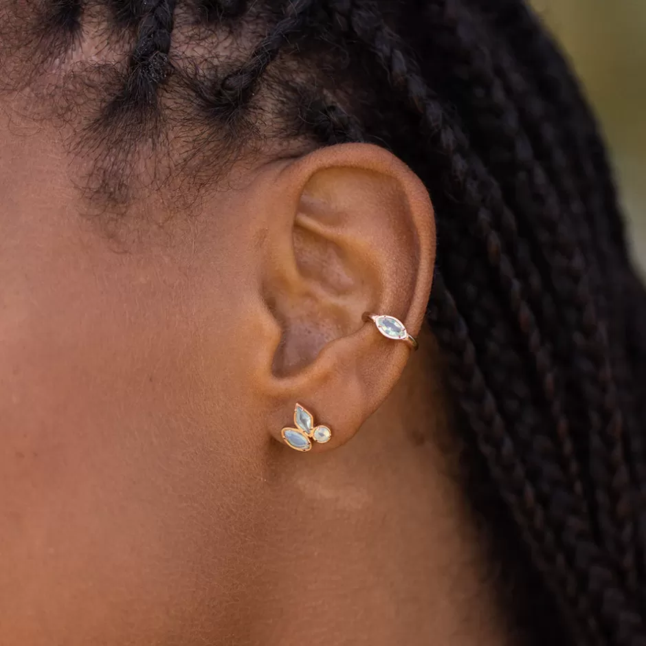 In Die Positivity Ohrstecker Sind Drei Unterschiedlich Geformte, Mintfarbene Schmucksteine Eingefasst.