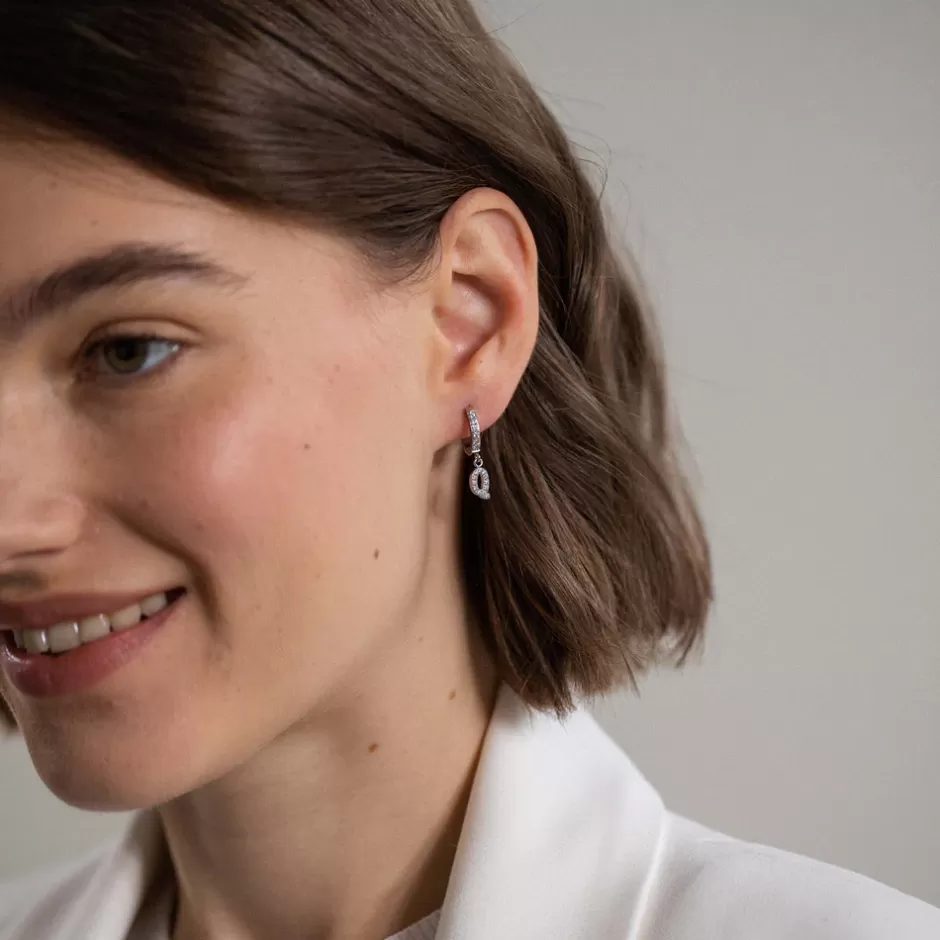 Kleine Creole Mit Einem Buchstaben-Anhanger, Beides Ist Mit Schmucksteinen Besetzt.