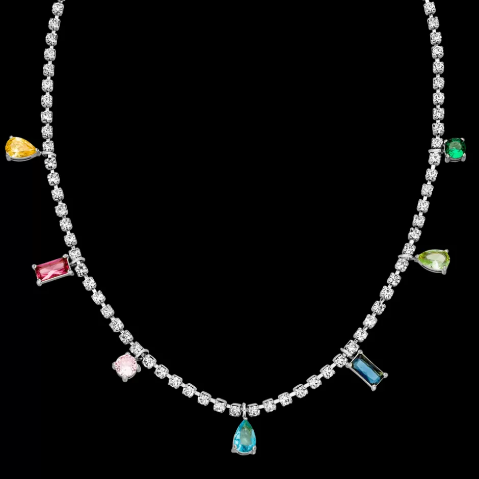 Die Aus Strasssteinen Bestehende Santorini Kette Wird Durch Bunte Anhanger Verziert.