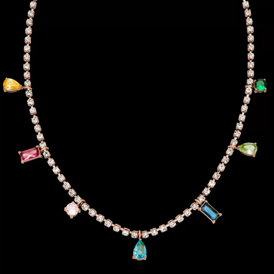 Die Aus Strasssteinen Bestehende Santorini Kette Wird Durch Bunte Anhanger Verziert. MaterialGold: Edelstahl 18K Vergold…