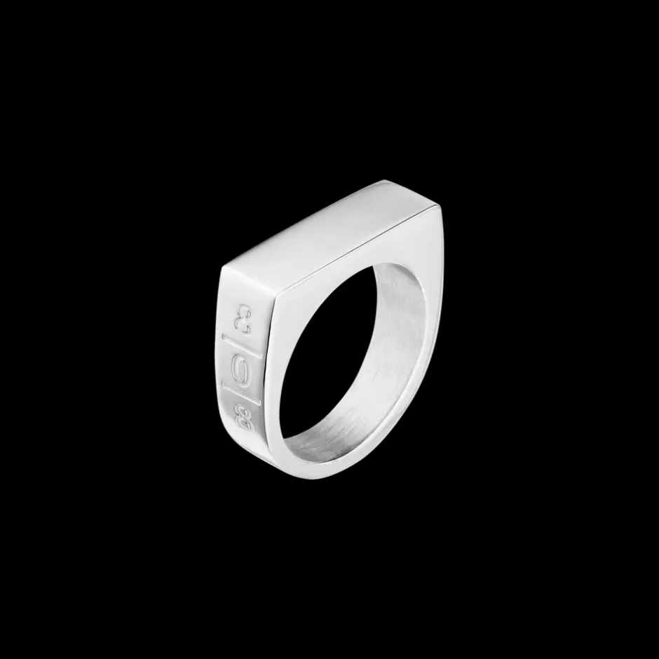 Edgy Statement-Ring Mit Seitlich Eingraviertem 808 Logo.